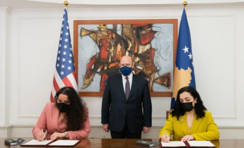 Osmani skruan se sot bashkë me drejtoren e USAID Kosovo, Zeinah Salahi e në prezencë të Ambasadorit Amerikan Jeffrey Hovenier, ka nënshkruar amandamentin e katërt të Marrëveshjes së Grantit për Objektivat Zhvillimore me Shtetet e Bashkuara të Amerikës.
