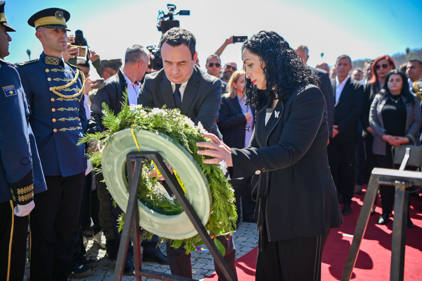 Kryeministri i Republikës së Kosovës, Albin Kurti, së bashku me Presidenten Vjosa Osmani-Sadriu fillimisht bëri homazhe në Kompleksin Memorial “Dëshmorët e Koshares”, në nderim të të rënëve për liri.