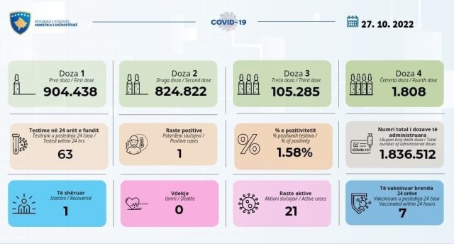 Ministria e Shëndetësisë ka njoftuar se gjatë 24 orëve të fundit është vetëm një rast pozitiv me COVID-19.