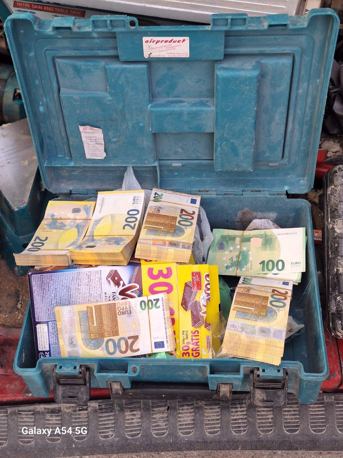 “Në lidhje me rastin është kryer kontrolli i shtëpisë së të dyshuarit ku është gjetur makina për numërimin e parave. Në këtë rast në total janë sekuestruar provat si në vijim: 100,000.00 €uro kartëmonedha nga 200 €uro, 5000.00 €uro kartëmonedha nga 100 €uro, 1 makinë për numërimin e parave dhe tre telefona celular”, thuhet në njoftim.