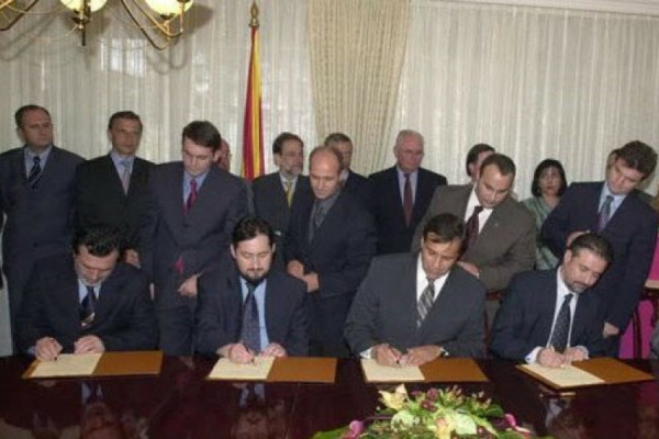 Kjo kontratë në mes dy popujve u nënshkrua nga kryetari i atëhershëm i Maqedonisë, Boris Trajkovski, kryeministri i atëhershëm, Lubço Georgievski, liderët e LSDM-së Branko Cërvenkovski, të PPD-së, Imer Imeri dhe ai i PDSH-së, Arbën Xhaferi./klankosova/