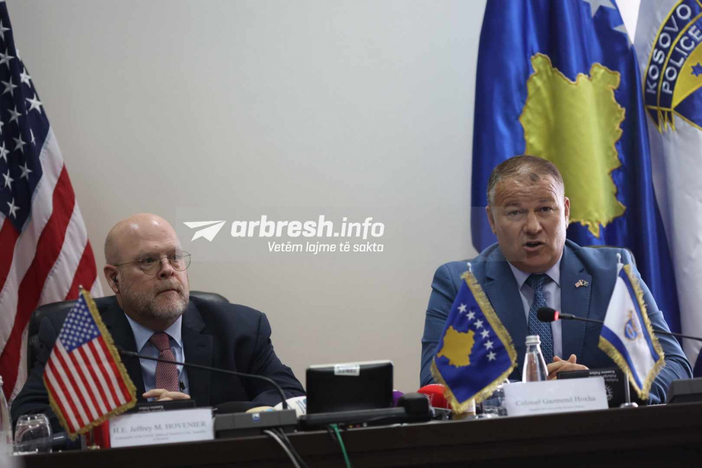 “Është nder dhe respekt ta kemi këtu ambasadorin amerikan, e falënderojmë për mbështetjen. Ne kemi arritur t’i kemi standardet falë përkrahjes. Janë 250 kamera të trupit që janë dhënë donacion nga ambasada amerikane për zyrtarët tanë. Kjo mundëson që t’i monitorojmë policët tanë dhe t’i mbajmë përgjegjës. Këto kamera do të vlejnë edhe si dëshmi për gjyqësorin. Një pjesë do të shpërndahet edhe në veri të Kosovës, që të mbajmë besueshmërinë dhe të rrisim atë nga qytetarët tanë”, ka thënë Hoxha në një konferencë të përbashkët për media.