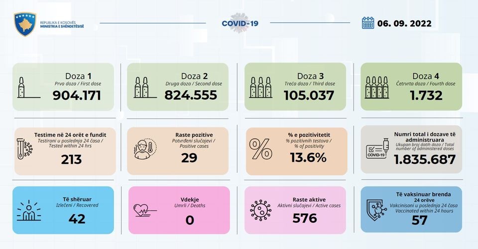Në Kosovë gjatë 24 orëve të fundit, janë regjistruar edhe 29 raste të reja me COVID-19, derisa nuk është raportuar për ndonjë të vdekur nga ky virus.