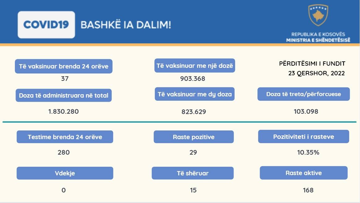 29 raste të reja të infektimit me COVID-19 janë konfirmuar të enjten në Kosovë.