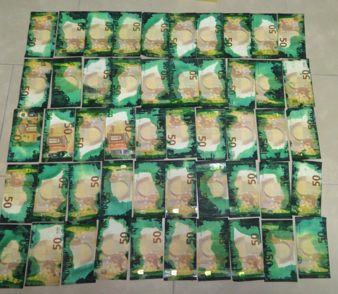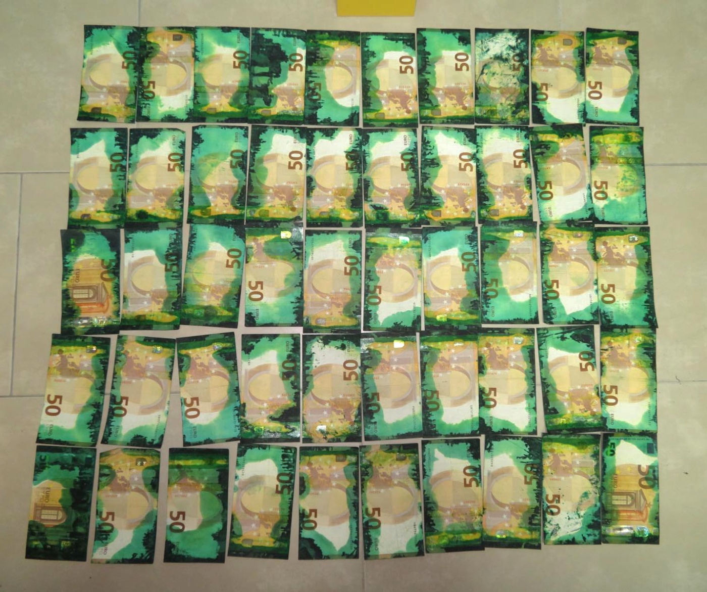 “Të dyshuari R.P., (viti i lindjes 1984, mashkull kosovar) dhe E.R., (viti i lindjes 1996, mashkull kosovar), dyshohet se kanë falsifikuar para, respektivisht janë marrë me vënien në qarkullim të parave të falsifikuara apo parave të vjedhura/grabitura nga ndonjë institucion bankar (para me ngjyrë). Te të njëjtit, gjatë kontrollit të veturës me targa vendore, me të cilën udhëtonin, janë gjetur para në vlerë 25.316 (njëzet e pesë mijë e treqind e gjashtëmbëdhjetë) € (të dyshuara si të falsifikuara, apo të vjedhura/grabitura nga ndonjë institucion bankar/financiar, pasi që parat ishin të bëra me ngjyrë), andaj personat e dyshuar janë arrestuar për procedura të mëtejme.”, thuhet në njoftim.