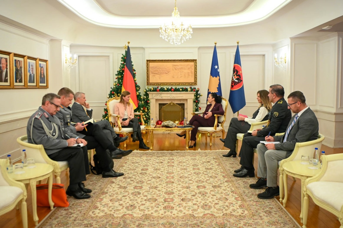 Në këtë takim, Presidentja Osmani shprehu falënderimin dhe mirënjohjen e lartë për përkrahjen e Gjermanisë, ministrisë së Mbrojtjes dhe forcave gjermane ndaj Kosovës në rindërtimin, pavarësinë, shtetndërtimin, zhvillimin dhe forcimin e Republikës së Kosovës dhe institucioneve të saj të mbrojtjes dhe sigurisë./Arbresh.info/