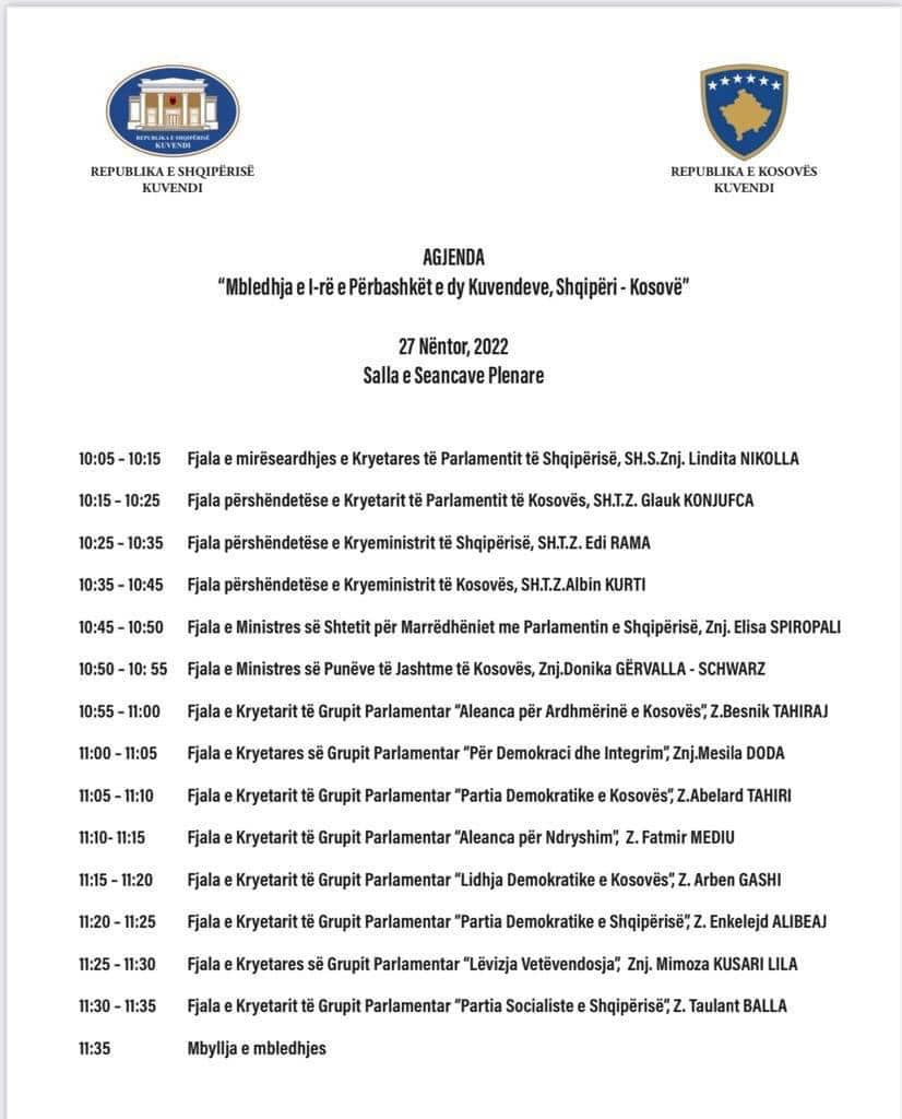 Kjo është agjenda për mbledhjen të dy kuvendeve./arbresh.info/