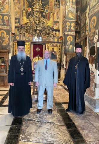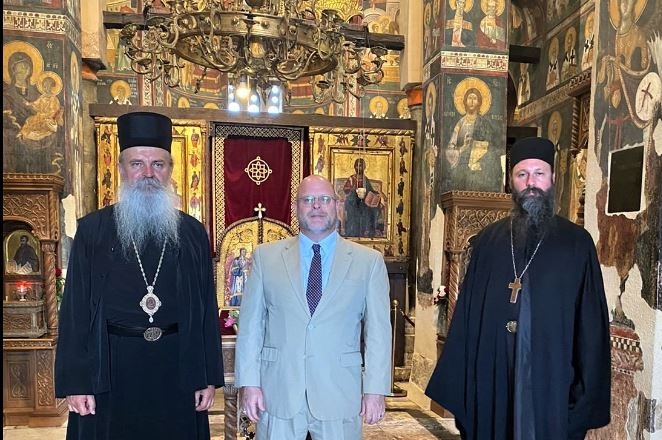 Ambasadori i Shteteve të Bashkuara të Amerikës në Kosovë, Geoffrey Hovenier, së bashku me peshkopin Teodosjev nga Rashka-Prizreni, kanë vizituar manastirin e Graçanicës.