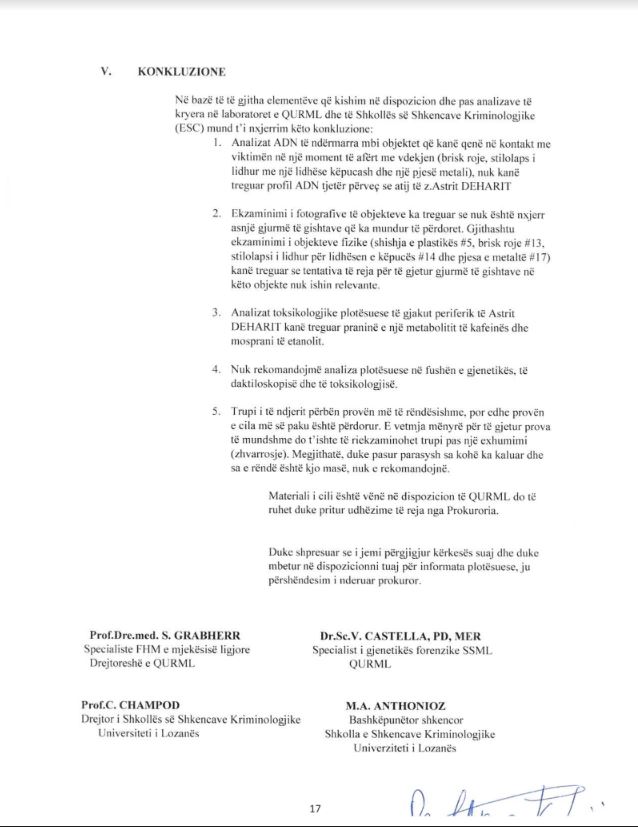 Për hir të korrektësisë ju njoftojmë se bashkangjitur gjeni konkluzionet në tërësi të Institutit të Mjekësisë Ligjore në Lozanë të Zvicrrës./arbresh.info/