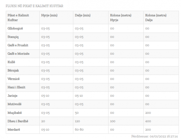Këto janë të dhëna të publikuar rreth orës 16 e 30 minuta nga Qendra kombëtare për Menaxhim të Kufijve./arbresh.info/