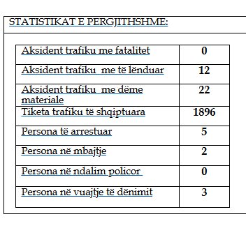 Sipas raportit, në këtë periudhë nuk është shënuar asnjë aksident trafiku me fatalitet, ndërsa janë regjistruar 12 aksidente me të lënduar dhe 22 të tjera me dëme materiale.