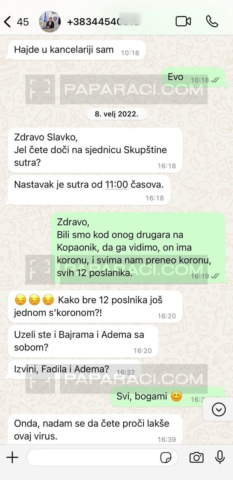 Sllavko Simiq: Përshëndetje, Ishim te ai shoku në Kopaonik, për ta vizituar, ai është me koronë, dhe të gjithëve na infektoi me koronë, të gjithë 12 deputetë