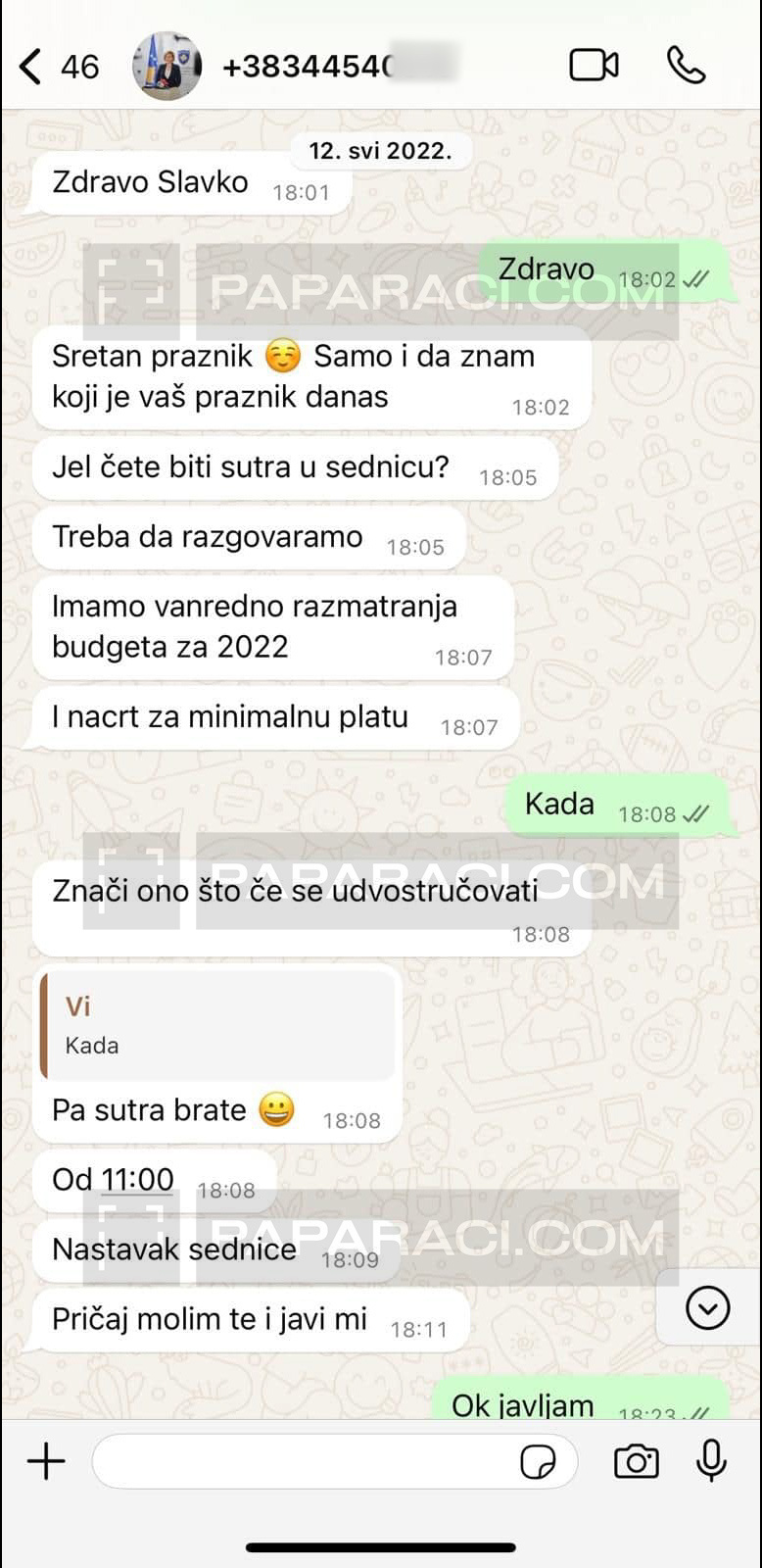 Sllavko Simiq: Kolege, Kam marrë dritën e gjelbër që të shihem me Kryeministrin dhe të bisedojmë. Nëse bën nesër, për mua është OK.