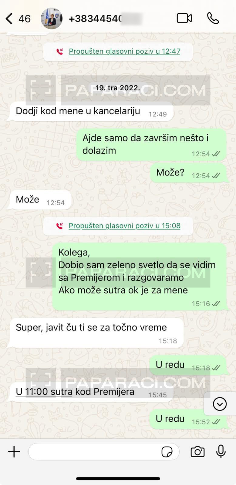 “Kolege, kam marrë dritën e gjelbër që të shihem me Kryeministrin dhe të bisedojmë. Nëse bën nesër, për mua është OK”, e informon Simiqi, Kusari-Lilën.