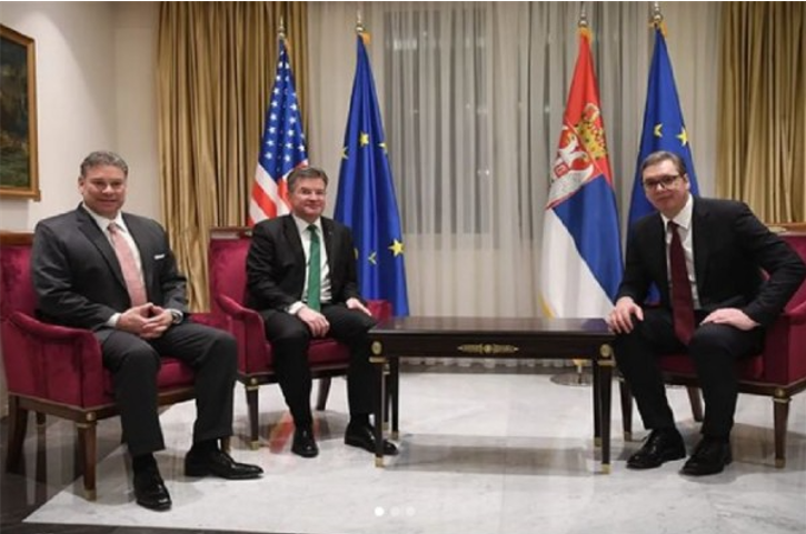Ata me këtë rast janë takuar me presidentin e Serbisë Aleksandar Vuçiq, të cilit i bartën mesazhin se BE-ja dhe SHBA-ja ndajnë të njëjtin vizion për procesin e dialogut dhe se përpjekjet e tyre synojnë të arrijnë një marrëveshje gjithëpërfshirëse.