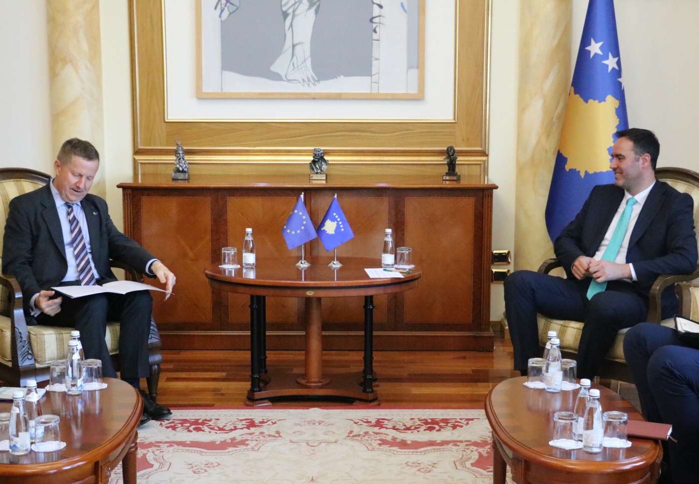 Sipas njoftimit, në takim u bisedua për bashkëpunimin mes Republikës së Kosovës dhe Bashkimit Evropian, në kuadër të perspektivës evropiane të vendit tonë, shkruan Arbresh.info.