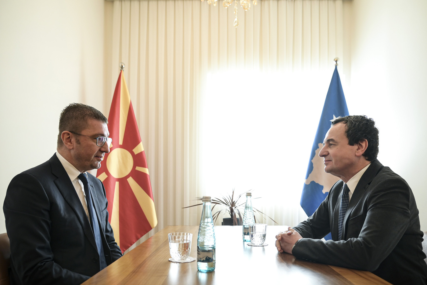 Para fillimit të mbledhjes së dytë të përbashkët ndërmjet Qeverisë së Republikës së Kosovës dhe Qeverisë së Maqedonisë së Veriut, Kryeministri Albin Kurti, zhvilloi sot një takim tête-à-tête me Kryeministrin e Maqedonisë së Veriut, Hristijan Mickoski.