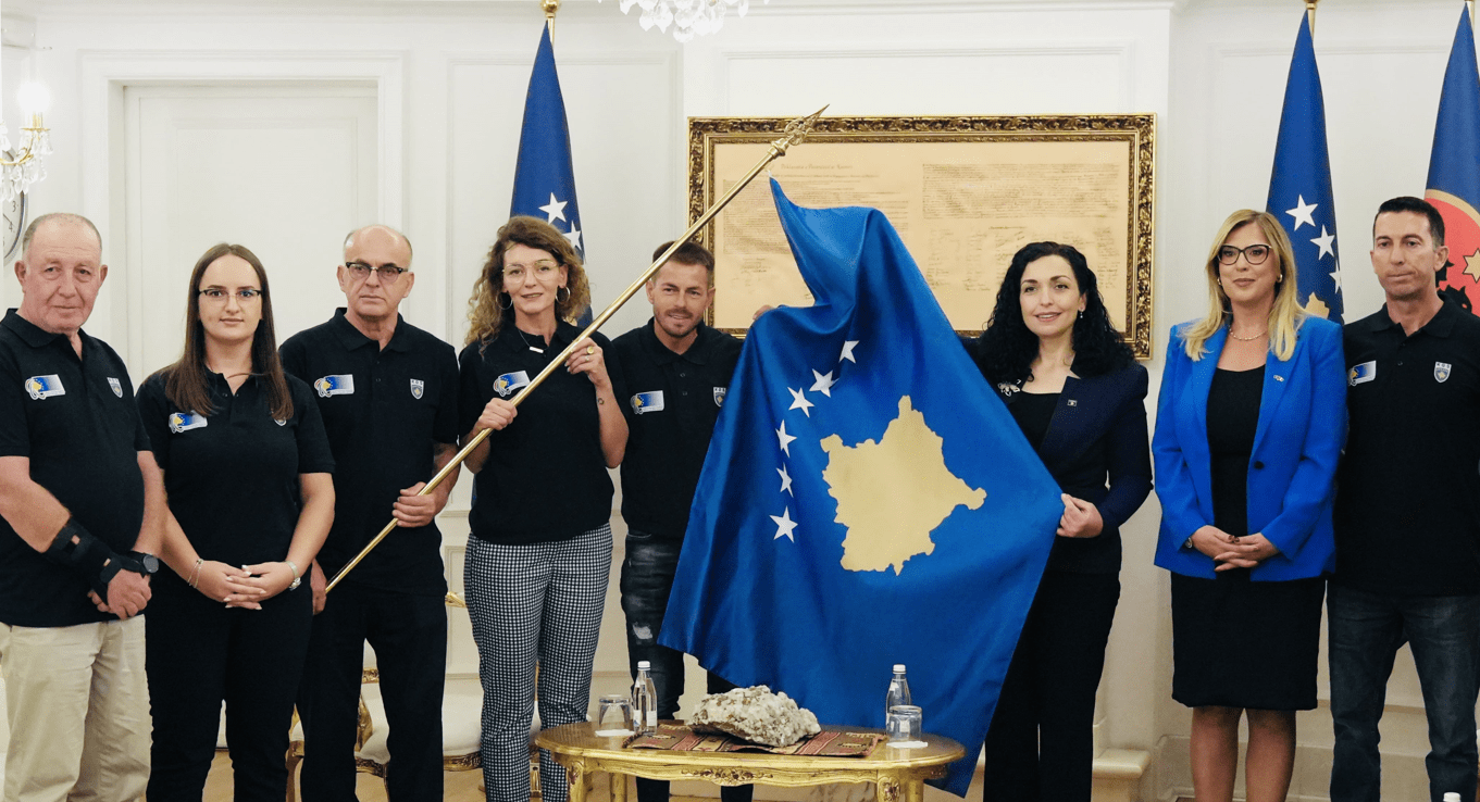Në ambientet e Presidencës së Kosovës, Presidentja e Republikës së Kosovës, Vjosa Osmani, i dorëzoi sot flamurin e shtetit të Republikës së Kosovës paraatletit Grevist Bytyqi, i cili do të përfaqësojë vendin në Lojërat Paralimpike “Paris 2024”.