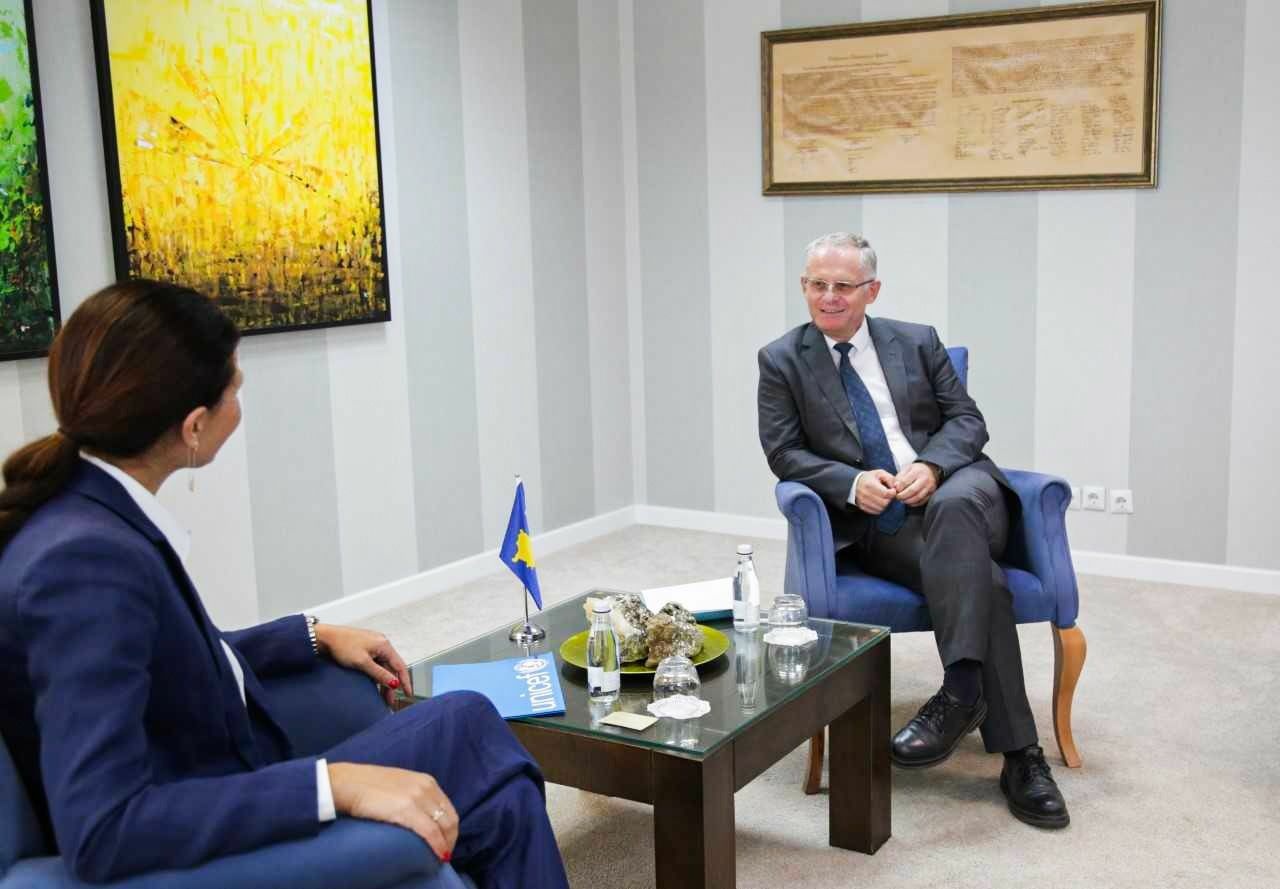 Zëvendëskryeministri i parë për Integrim Evropian, Zhvillim dhe Dialog i Republikës së Kosovës, Besnik Bislimi, mirëpriti në takim shefen e re të zyrës së UNICEF-it në Kosovë, Veronika Vashchenko.