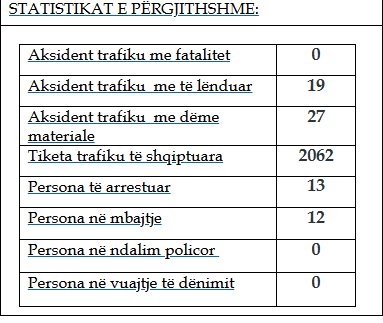 27 aksidente janë me dëme materiale kurse 19 aksidente me të lënduar.