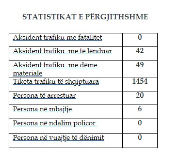 Sipas raportit, në këtë periudhë nuk është shënuar asnjë aksident trafiku me fatalitet, ndërsa janë regjistruar 42 aksidente me të lënduar dhe 49 të tjera me dëme materiale.