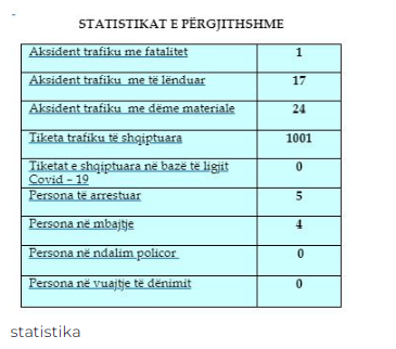 Një aksident ka qenë me fatalitet, 17 me të lënduar dhe 24 me dëme materiale.