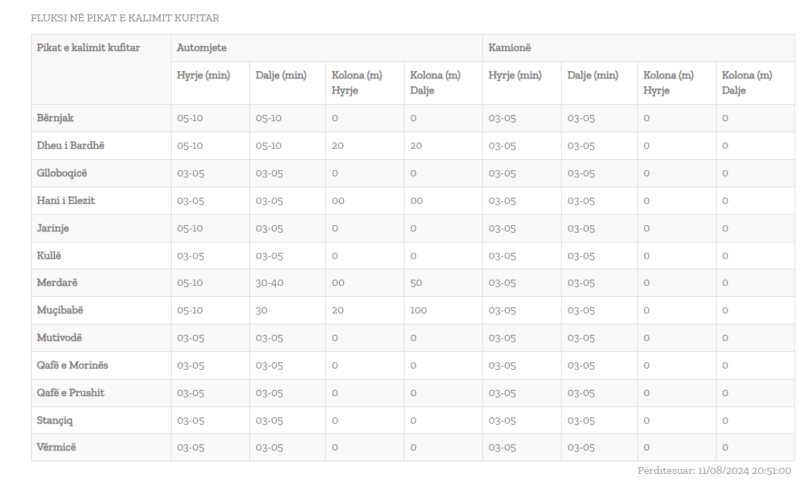 Vetëm dy pika kufitare janë të më të ngarkuara, ajo në Merdarë, ku pritjet në dalje vijojnë të jenë deri në 40 minuta, dhe në Muçibabë deri në gjysmë ore./Arbresh.info/