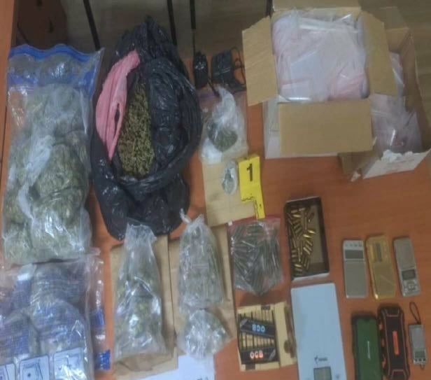 Sipas njoftimit, gjatë kontrollit në shtëpi janë gjetur gjetur dhe sekuestruar 1.994 kg. substancë e dyshuar narkotike e llojit marihuanë, 75 fishekë kalibrash të ndryshëm, 7 peshore të ndryshme, mbështjellës të ndryshëm për të substancave narkotike dhe një radio-lidhje, shkruan Arbresh.info.