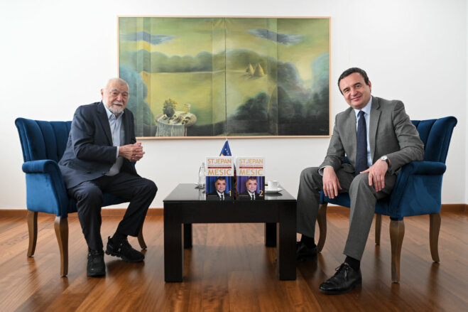Kryeministri në detyrë i Republikës së Kosovës, Albin Kurti, i shoqëruar nga ministri në detyrë i Mbrojtjes, Ejup Maqedonci, mirëpriti sot ish-Presidentin e Republikës së Kroacisë, Stepjan Mesić.
