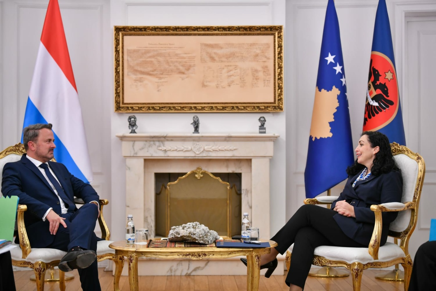 Presidentja e Republikës së Kosovës, Vjosa Osmani ka pritur sot në takim ministrin e Jashtëm të Luksemburgut, njëherësh zëvendëskryeministër dhe ministër i tregtisë Xavier Bettel, me të cilin u diskutua për situatën aktuale politike dhe të sigurisë në vend, forcimin e marrëdhënieve dypalëshe si dhe nxitjen e bashkëpunimit në fushat me interes të përbashkët.