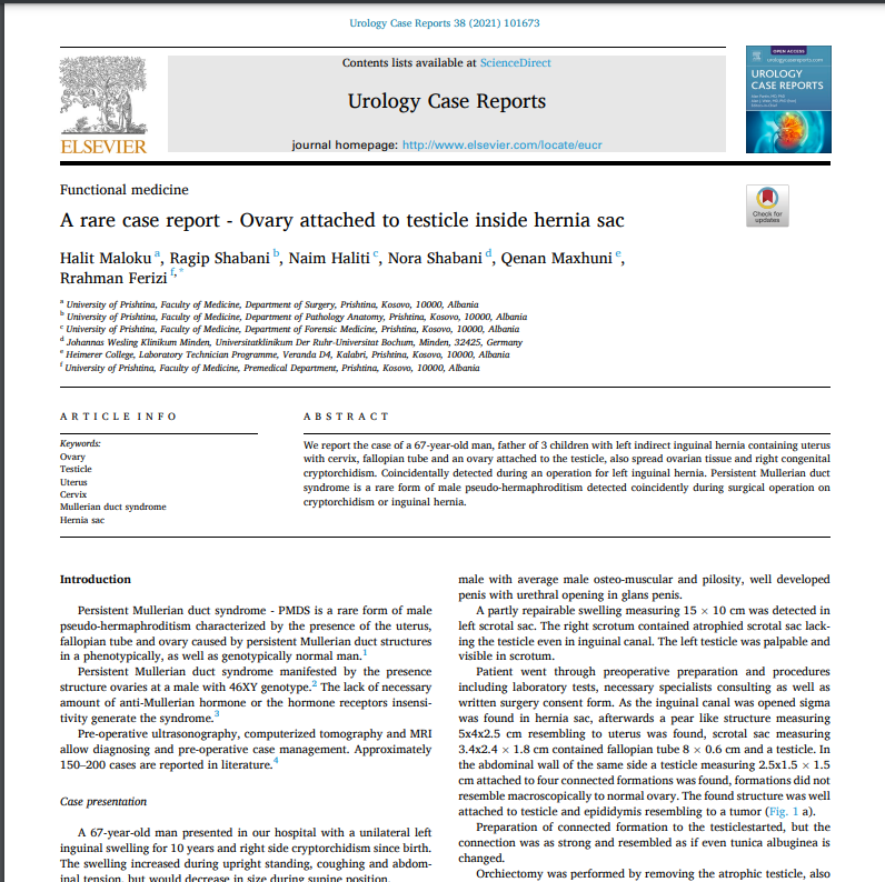 ”67 vjeçari, i cili ishte lindur vetëm me një testikul, shkoi në spitalin në Kosovë duke u ankuar për ënjtje në ijë që kishte i zgjatur për një dekadë. Kirurgët inspektuan masën 15 me 10 cm, vetëm për të zbuluar mitrën, qafën e mitrës, tubin fallopian dhe vezoren, si dhe testikun e tij të munguar”, theksohet në raport.