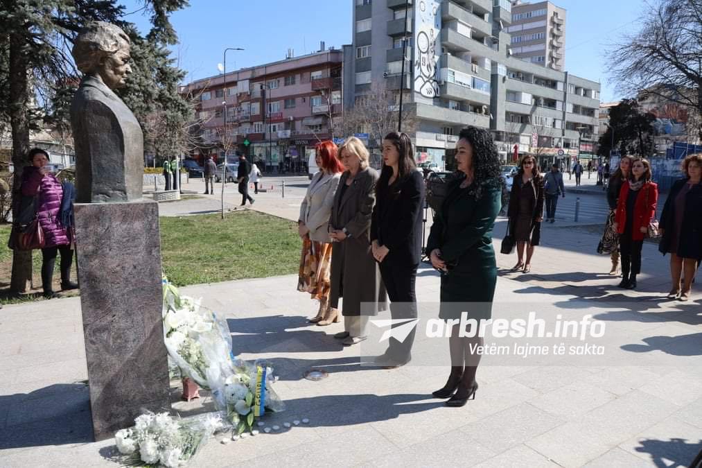 Deputetja e Lidhjes Demokratike e Kosovës, Valentina Bunjaku, deputetja e Partisë Demokratike të Kosovës, Eliza Hoxha, deputetja e LVV-së, Tinka Kurti dhe deputete të tjera vendosën lule para bustit të Albright.