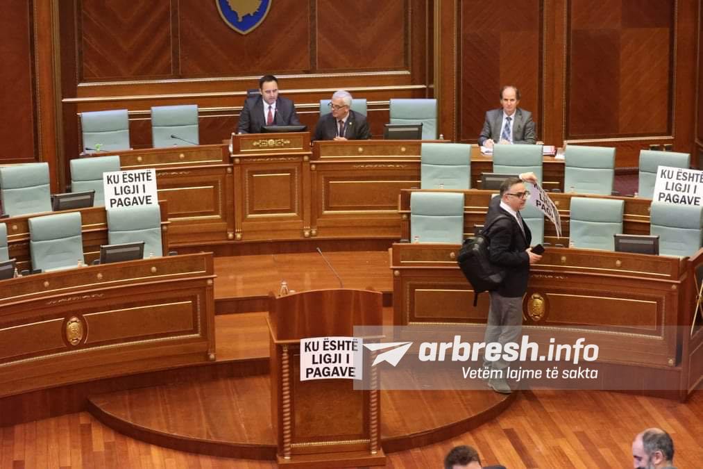 Tahiri në foltoren e Kuvendit ka vendosur shkrime në lidhje me Ligjin e Pagave.
