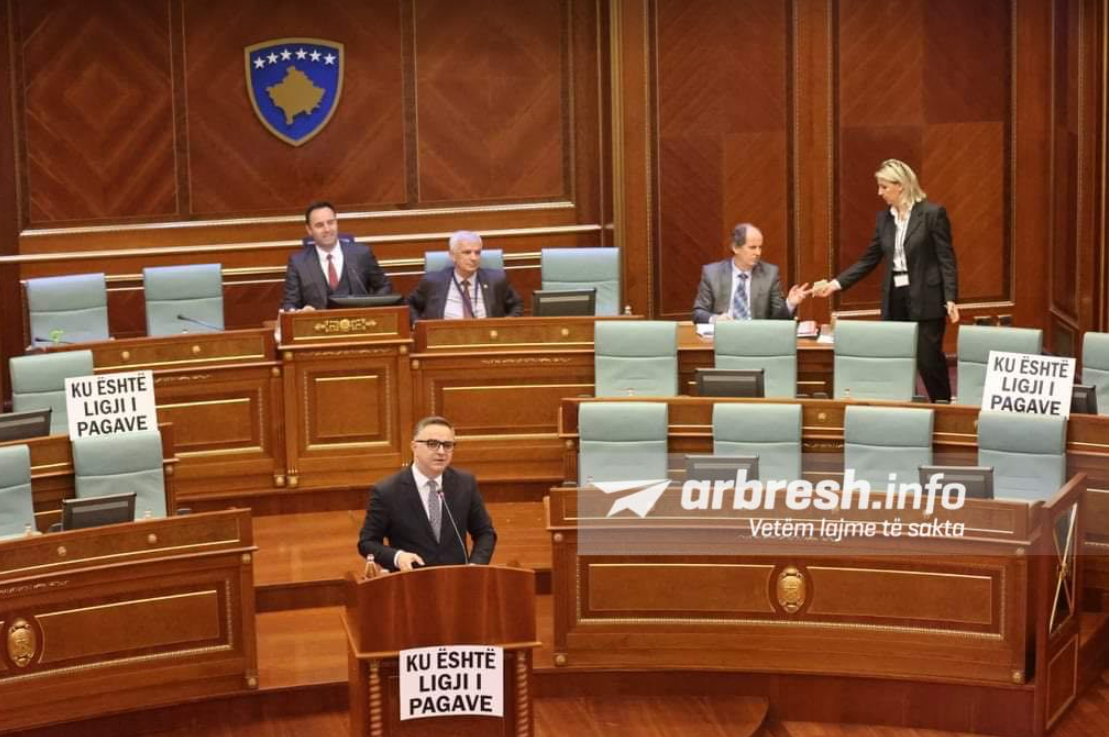Tahiri në foltoren e Kuvendit ka vendosur shkrime në lidhje me Ligjin e Pagave.