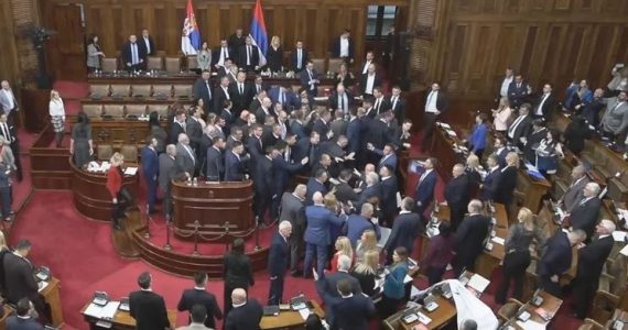 Kuvendi i Serbisë është përfshirë në një kaos derisa disa deputetë të opozitës nga radhët e “Dveri” janë sulur drejt presidentit të Serbisë, Aleksander Vucic. Siç raporton “Blic” pas kësaj ka ndërhyrë menjëherë sigurimi. Opozitarët serbë kanë thirrur “tradhti, tradhti” dhe “Kosova është zemra e Serbisë” dhe më pas janë nisur drejt vendit ku Vuçiq … Continue reading Tensione në Kuvendin e Serbisë, deputetët e opozitës i sulen Vuçiqit
