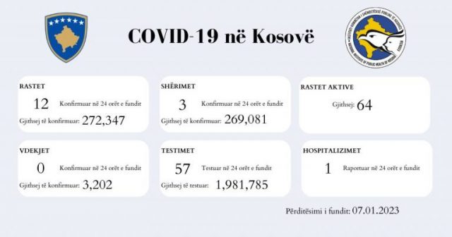 Sipas IKSHPK-së vetëm në 24 orët e fundit janë paraqitur 12 raste pozitive, pas 57 testimeve të bëra.