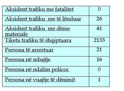 Sipas raportit zyrtar, nga këto aksidente, 21 kanë rezultuar me persona të lënduar, ndërsa 46 kanë shkaktuar vetëm dëme materiale.