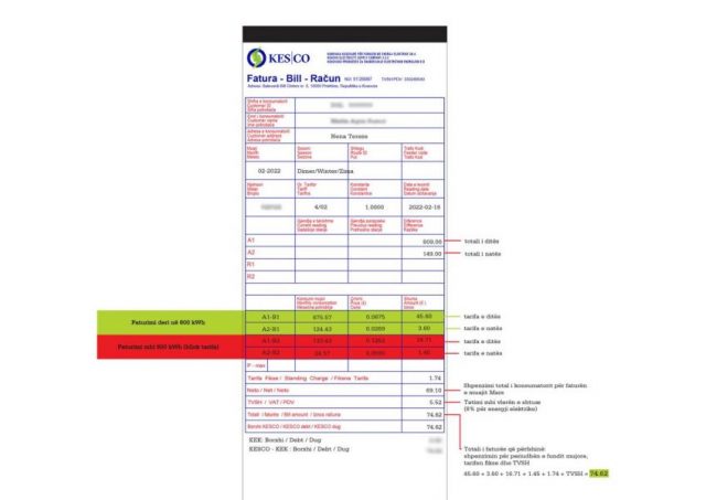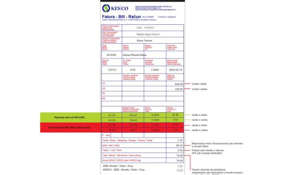 Për ta bërë më të lehtë leximin e faturës dhe mënyrën e llogaritjes, ne kemi integruar në faqen e KESCO-s një faturë me të gjitha shpjegimet e nevojshme në formë vizuale, që mund ta gjeni KETU: https://www.kesco-energy.com/calculator.html