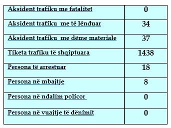 Sipas statistikave të përgjithshme të policisë, 34 nga këto aksidente kanë qenë me të lënduar dhe 37 me dëme materiale.