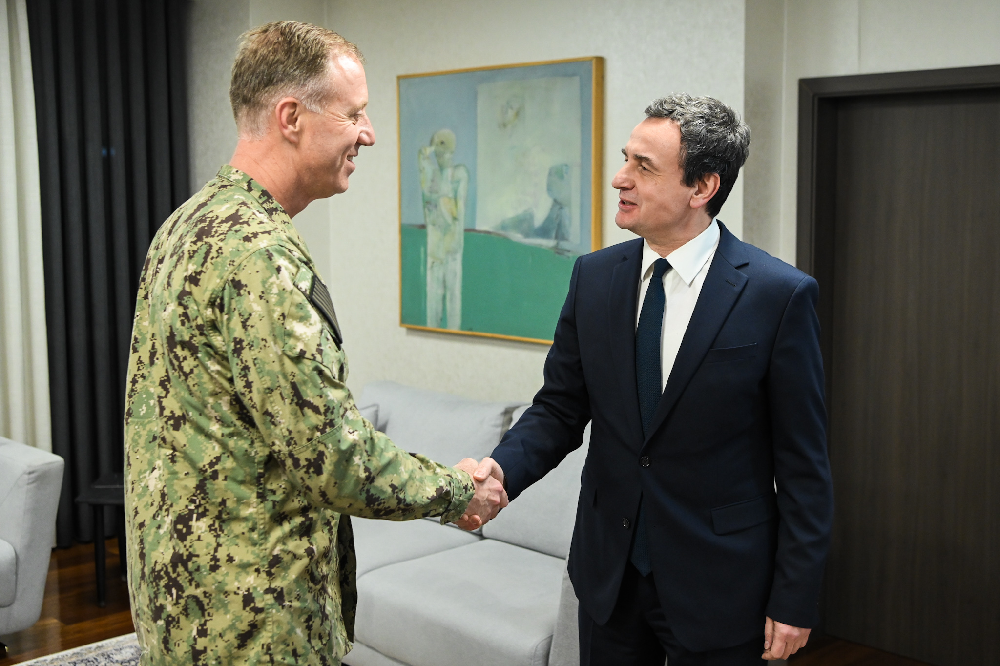 Kryeministri në detyrë i Republikës së Kosovës, Albin Kurti, mirëpriti në takim Komandantin e Komandës së Forcave të Përbashkëta Aleate të NATO-s në Napoli, Admiralin amerikan George M. Wikoff.