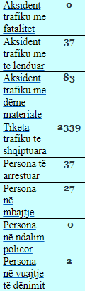 Policia ka njoftuar se kanë ndodhur 83 aksidente trafiku me dëme materiale dhe 37 me të lënduar.