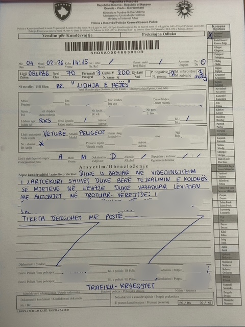 Sipas njoftimit, pas identifikimit nga zyrtarët policorë, ndaj vozitësit janë shqiptuar masa ndëshkuese në përputhje me legjislacionin në fuqi, konkretisht: