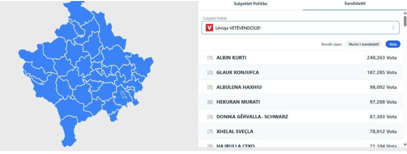Në Lëvizjen Vetëvendosje, që po kryeson kandidati për kryeministër i kësaj partie Albin Kurti me 240,263vota, këta janë kandidatët që vijnë pas tij.