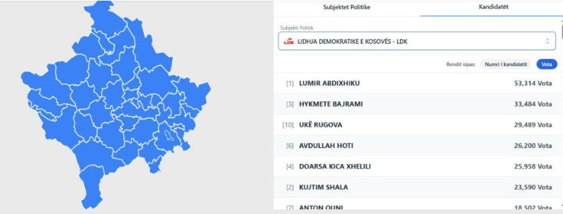 Në Lidhjen Demokratike të Kosovës, gjithashtu vota më së shumti mori kandidati për kryeministër i kësaj partie, Lumir Abdixhiku me 53,314 vota.