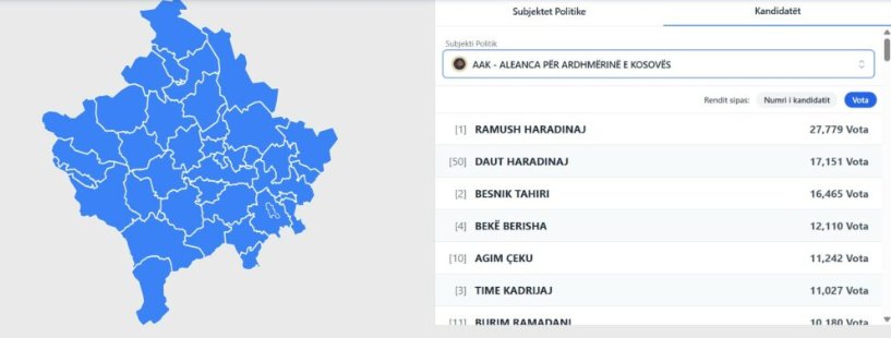 Në Aleancën për Ardhmërinë e Kosovës, listës si kandidati më i votuar i prinë, kandidati për kryeministër, Ramush Haradinaj me 27,779 vota.