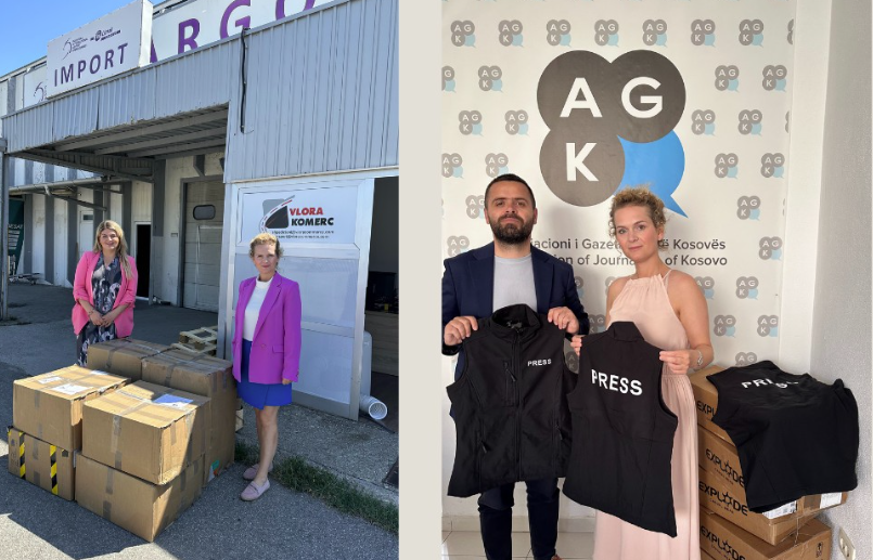 “Organizata Free Press Unlimited – FPU, me iniciativën dhe ndërmjetësimin e Zyrtares Ligjore të European Centre for Press and Media Freedom ECPMF, Flutura Kusari, i ka dhënë donacion AGK-së, mjete mbrojtëse për gazetarët që raportojnë në terren ku rrezikohet siguria e tyre fizike”, thuhet në njoftimin e AGK-së.
