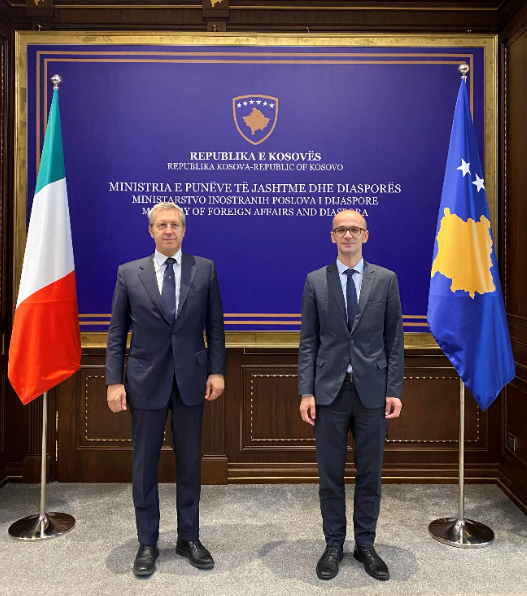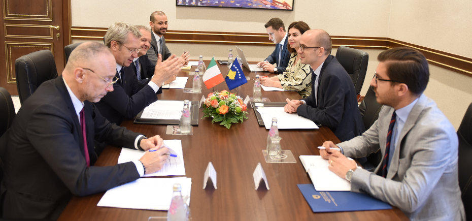 Zëvendësministri i Punëve të Jashtme dhe Diasporës, Kreshnik Ahmeti, priti në takim delegacionin nga Italia, të udhëhequr nga Nënsekretari i Shtetit për Punë të Jashtme, Bendetto Della Vedova, thuhet në një komunikatë për media.