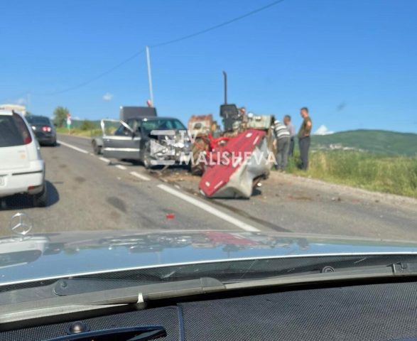 Në aksident janë të përfshirë një traktor dhe një automjet.