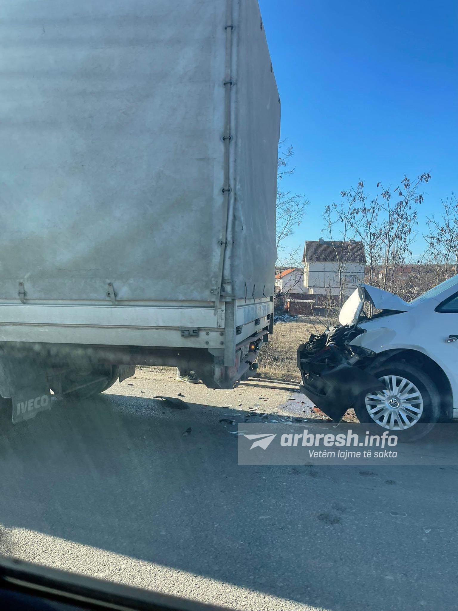 Lexues të arbresh.info kanë dërguar foto nga vendi i ngjarjes ku bëhet fjalë për një aksident vetëm me dëme materiale.