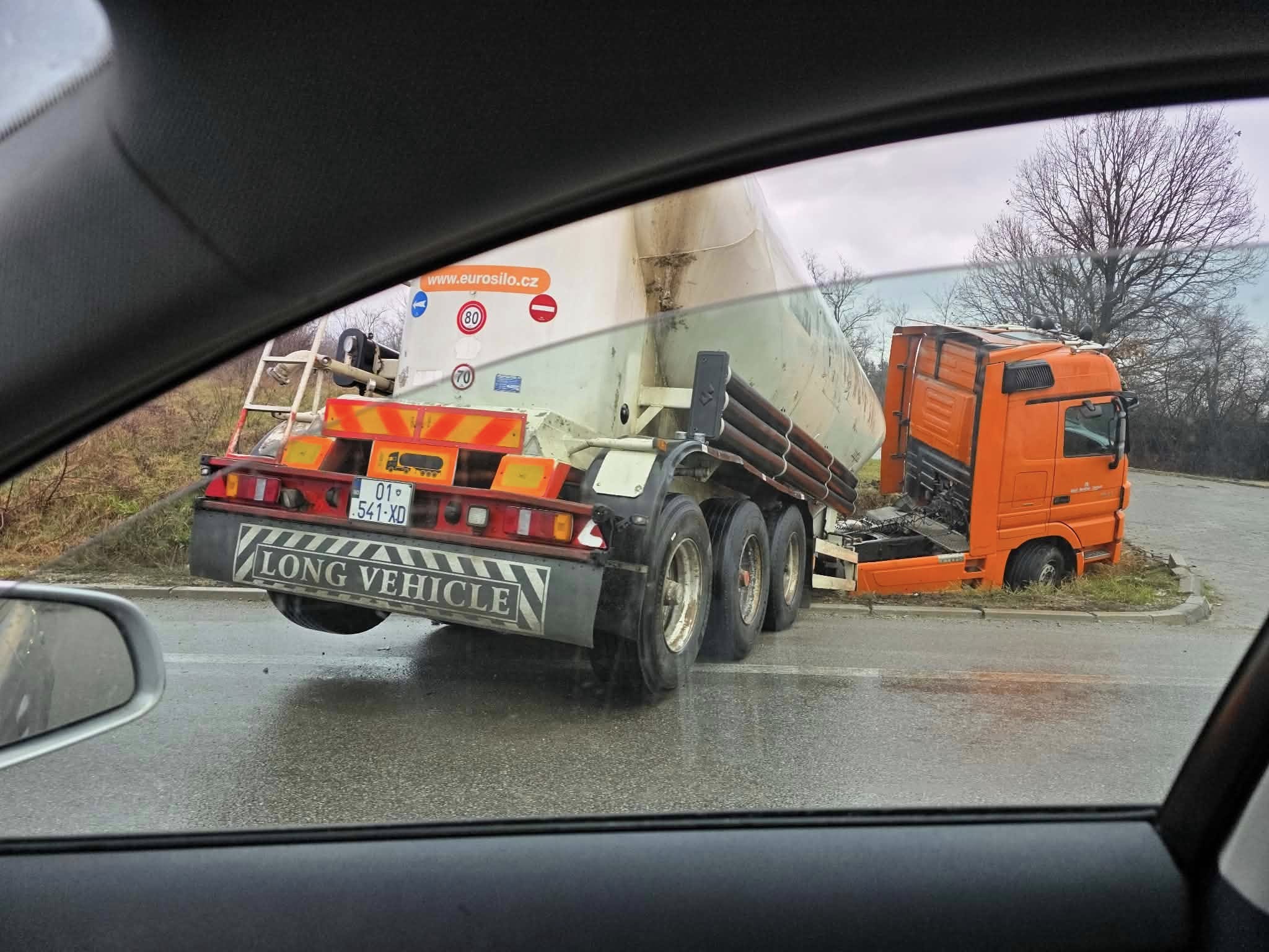 Sipas pamjeve, një cisternë shihet se ka përfunduar pothuajse jashtë rrugës.